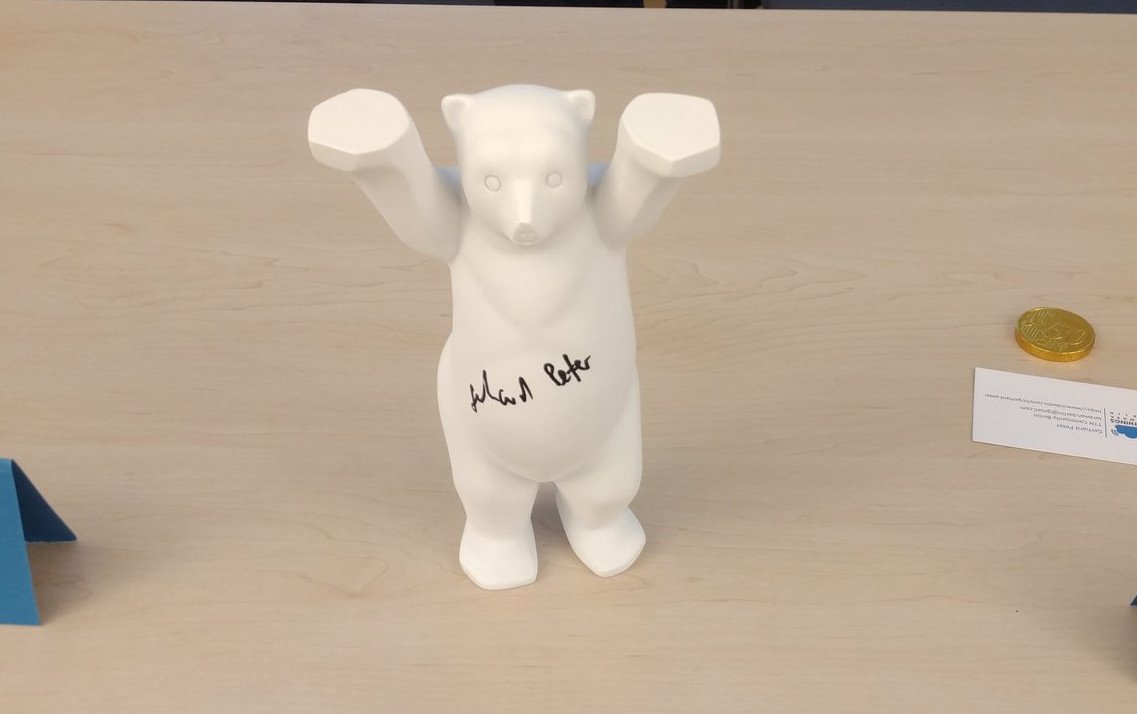 Als Abschieds- und Dankgeschenk durften die beiden einen Original Berliner Buddy-Bär in Empfang nehmen, auf dem sich alle Teilnehmer/innen des Abends namentlich verewigt hatten. Laurens versprach, dem Bären einen würdigen Standort in der Zentrale in Amsterdam an prominenter Stelle zu widmen.