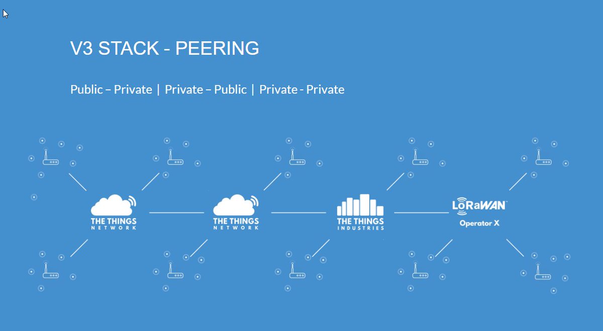 Damit wird dann, und das schon sehr bald, in weiten Teilen der Republik, ein prächtiges TTN - IoT - Netzwerk zur Verfügung stehen, welches mittels peering, in beiden Richtungen, auch das öffentliche LoRaWAN TTN Community Netzwerk mit einbeziehen wird. Es wird davon ausgegangen, dass das gegenseitige peering ohne gegenseitige Verrechnung von Kosten für traffic erfolgt! Das wurde noch einmal an diesem Abend bestätigt. Ein im Übrigen unerwartetes Novum, ein unerwarteter Schlenker, dieses wahren Riesen.