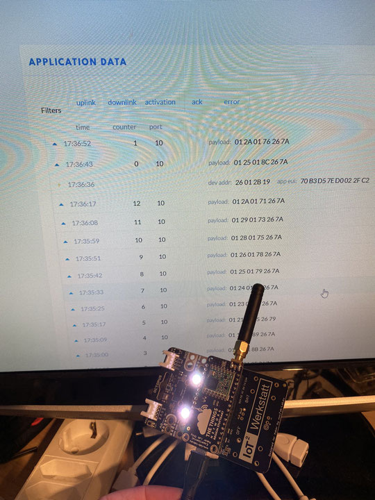 Im Download waren auch erste Beispiele und es war tatsächlich nur Drag&Drop bis der erste Octopus seine Daten über LoRa im TTN ablieferte.