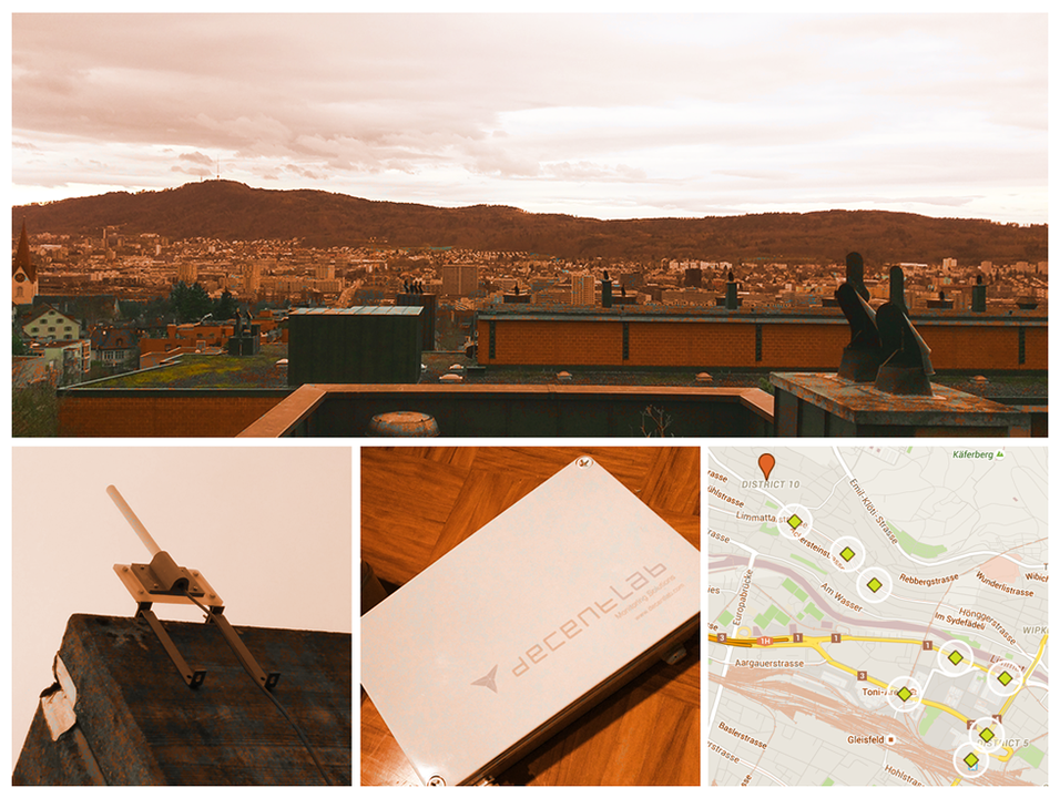On Monday morning, we installed the first permanent gateway of the city so now it is official: The Things Network Zurich is up and running!! This was truly a community effort: the gateway was initially sponsored by local.ch, the weather-proofing and enclosure by decentlab.ch, and the awesome location overlooking Zurich by the Funlab. Thanks a lot to everyone involved! The initial range testing shows about 3km range for outdoors, NLOS nodes but it could even be more, we haven't really reached the edge of coverage yet. We have a second gateway to be deployed soon, and in December many more will arrive to their respective owners!