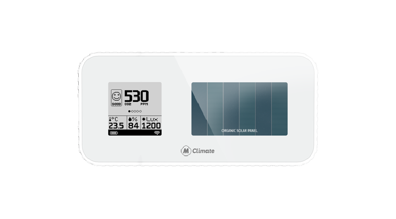 MClimate CO2 Display lite LoRaWAN is a stand-alone CO2 sensor powered entirely by solar energy using an organic solar panel. The device features a 1.54" e-ink screen, temperature and humidity sensor, LUX sensor and NDIR CO2 sensor.
