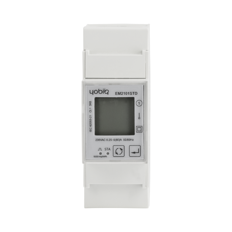 The YOBIIQ iQ Electricity EM2101 is a direct connected 1 Phase Energy Meter with built-in relay for controlling output.