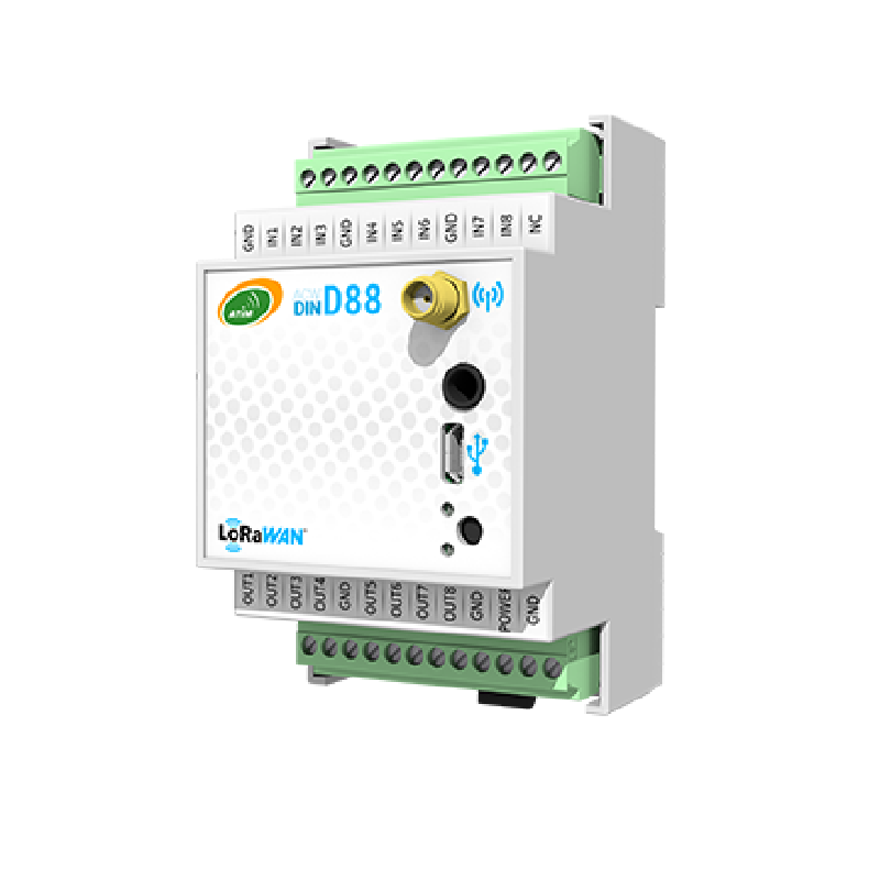 The DINDxx facilitates the reporting of the status of up to 8 dry contacts or up to 8 pulse counter indices. It also allows to remotely control industrial equipments and to check their proper functioning. The readings are regularly transmitted on LoRaWAN networks and its configuration is configurable from the ATIM suite tools.