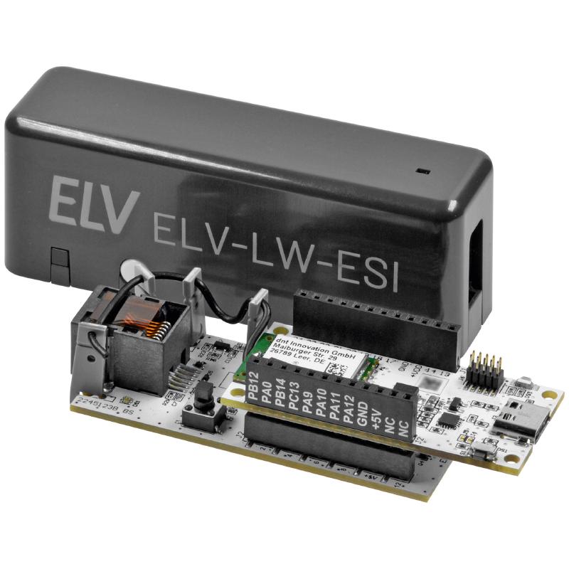 The ELV LoRaWAN® Energy Meter Sensor Interface ELV-LW-ESI kit is an interface module that, in conjunction with a radio module (included in the kit), records the energy consumption directly on the electricity or gas meter and sends the determined data via LoRaWAN®. The flexible meter reading can be implemented conveniently for many of the common electricity and gas consumption meters. Various sensors can be used to read out the meters, e.g. electricity meters with IEC or LED interface, Ferraris or gas meters. The sensors are available separately and can therefore be individually adapted to the application. The ELV-LW-ESI kit is continuously supplied via a USB-C socket and therefore does not require a battery change.