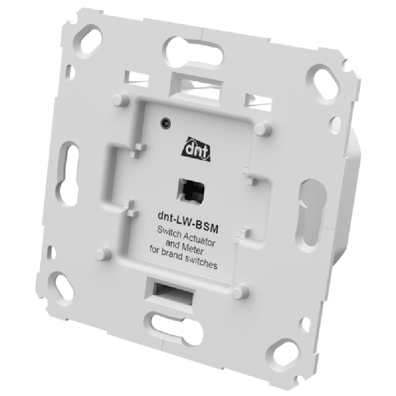 The dnt LoRaWAN® Switch Actuator and Meter for brand switches is the ideal solution for intelligent control of lights and other electrical loads in public buildings such as schools, industrial plants, government facilities, hotels, or offices. It can be deployed within existing infrastructure and offers remote control via downlinks or directly on the device using the mounted switch plate.