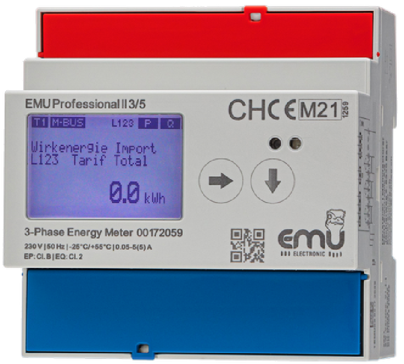 3-phase energy meter with MID B+D approval for billing purpose. Connection: Direct (100A) or indirect (CT /5 and /1A). Internal clock. External or internal antenna.