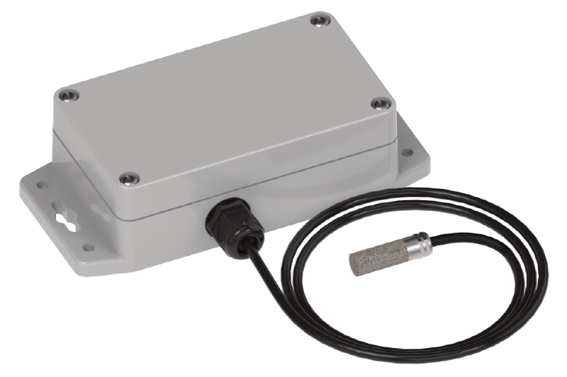 The external-probe air temperature and humidity sensor uses air flow through a sintered porous stainless steel filter to allow for temperature and humidity measurements in outdoor and industrial environments. The sintered porous filter is IP54 rated to protect against dust and debris.