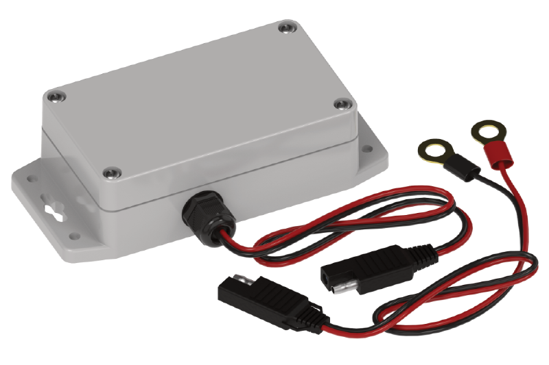 The wireless voltage sensor measures voltages between 0-30V with 10mV precision. When the voltage rises above or drops below a threshold, an alert is sent over the wireless network. An indoor/smart building version is also available for low cost applications. There are also current sensor attachments that can be added to the voltage sensor to measure AC current from a range of 0-5A up to a range of 0-300A.