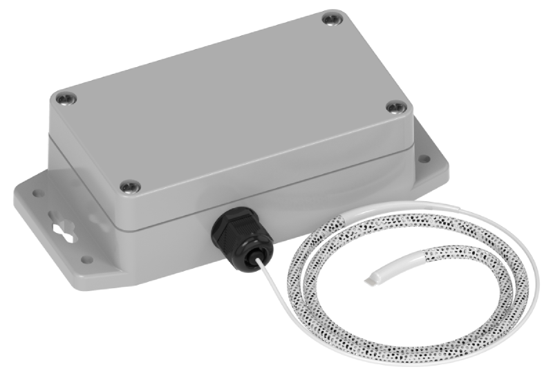 This sensor uses a water rope to detect the presence of water or other liquids. When the presence of water or another liquid is detected, an alert is sent to the wireless network. Designed for industrial/outdoor use.