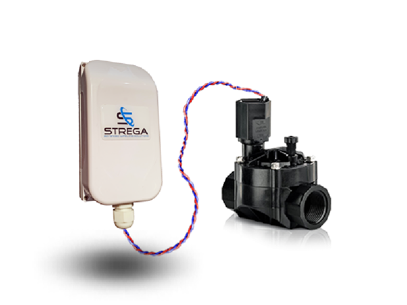 The STREGA LoRaWAN Time-controlled Emitter remotely actuates an irrigation valve. With its ultra-low-power consumption, the Smart-Emitter can trigger Open or Close operations of any irrigation valve equipped with a DC latching solenoid. Watering schedulers can be programmed directly at the zone level, avoiding the necessity to use an irrigation controller.